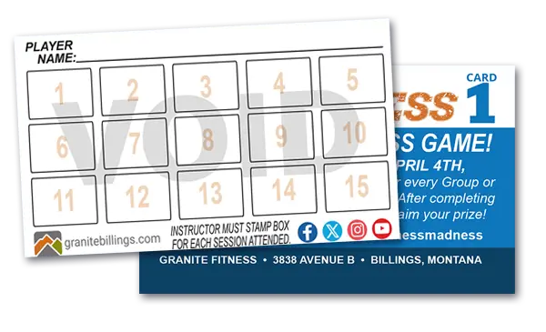 Turn in your completed or incomplete player cards to our Front Desk on or before Wednesday April 8th. All cards are entered into a drawing for 6 months of membership FREE!